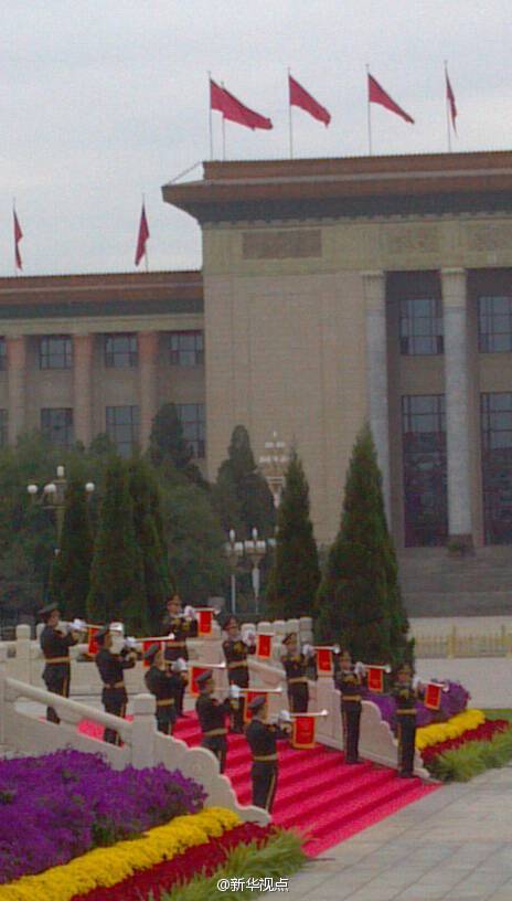 新華網(wǎng)北京9月30日電 據(jù)新華社“新華視點(diǎn)”微博報(bào)道,今天是國家設(shè)立的首個(gè)烈士紀(jì)念日,正值新中國成立65周年之際。上午,習(xí)近平、李克強(qiáng)、張德江、俞正聲、劉云山、王岐山、張高麗等來到天安門廣場,與首都各界代表一起,出席向人民英雄敬獻(xiàn)花籃儀式。