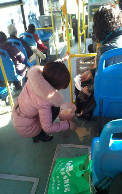 6、鄭州女乘客用衛(wèi)生紙擦車(chē)上奶茶