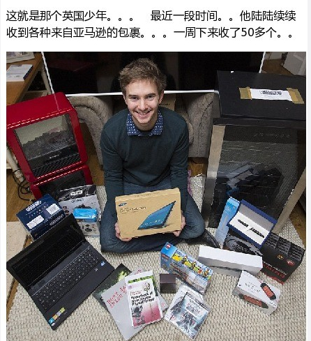 英國(guó)有個(gè)少年很煩惱。近一周他陸續(xù)收到50多個(gè)來(lái)自亞馬遜寄錯(cuò)給他的包裹。忐忑之下,他給亞馬遜的客服打了電話(huà)。亞馬遜:啊對(duì)不起,是我們弄錯(cuò)了,給你寄了那么多,給你添麻煩了。你就全部留下吧,我們不要了...有點(diǎn)爽...