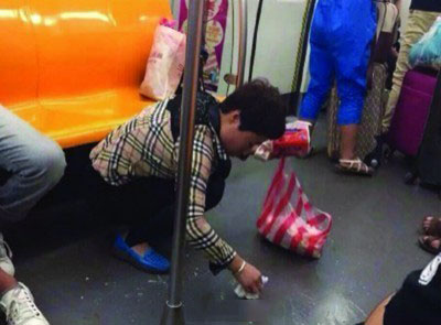 昨天沈陽地鐵二號線上,一名看上去喝多了的男乘客突然吐了一地,所有人都避之不及,有些人座位都不要了,一位中年女乘客卻拿出面巾紙和塑料袋,蹲在地上開始收拾嘔吐物。10分鐘后污物都被她獨(dú)自清理干凈。為“最美女乘客”點(diǎn)贊!