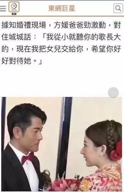 【方媛爸爸叮囑#郭富城#:我從小聽你歌長大】據(jù)港媒報(bào)道,#郭富城方媛婚宴#現(xiàn)場,方媛爸爸很激動(dòng)地對(duì)郭富城說:“我從小就聽你的歌長大的,現(xiàn)在我把女兒交給你,希望你好好對(duì)待她?!?/p>