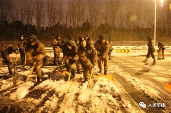 1月25日晚開始,東部戰(zhàn)區(qū)和江蘇省軍區(qū)緊急派出官兵,奔赴駐地掃雪除冰、清理道路,保障人民出行安全。