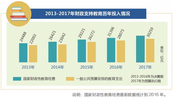 幼有所育、學有所教。自2013年以來,全國財政花在教育上的錢逐年增加。2018年,這一支出預算將繼續(xù)增加至31437億元。資金將用于支持發(fā)展公平優(yōu)質(zhì)教育,改善貧困地區(qū)義務教育薄弱學?;巨k學條件等。