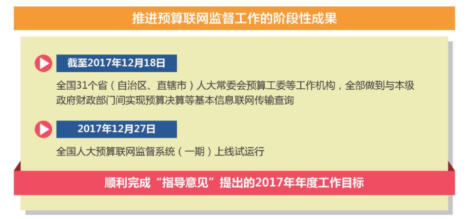 此外,全國人大還著力推進預算聯(lián)網(wǎng)監(jiān)督工作,更好地打造“陽光財政”。通過網(wǎng)絡傳輸報送、提供聯(lián)網(wǎng)查詢,實現(xiàn)預算審查監(jiān)督信息化和網(wǎng)絡化,提升預算審查監(jiān)督內(nèi)容的詳實性和時效性,增強預算審查監(jiān)督的針對性和有效性,推進財政信息公開透明和預算行為規(guī)范有序。目前,推進預算聯(lián)網(wǎng)監(jiān)督工作已經(jīng)取得階段性成果。