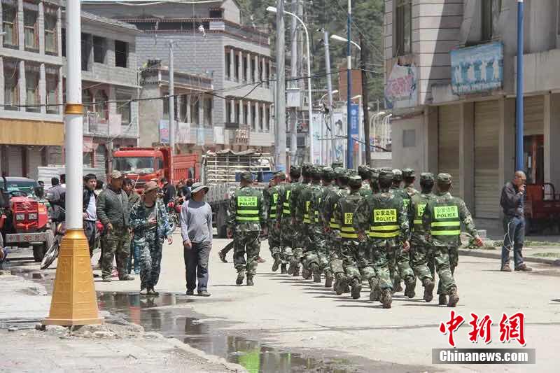 5月12日下午15點05分,尼泊爾再次發(fā)生里氏7.5級地震,吉隆方向震感強烈。地震發(fā)生后,機動支隊二大隊立刻組織22人的救助小組趕赴幫興村進行救援,挨家挨戶開展搜救,并轉(zhuǎn)移和安撫受災群眾。在吉隆鎮(zhèn)街面擔負巡邏任務的官兵成功從救出1名受傷群眾,并及時將其送往醫(yī)療點進行醫(yī)治。目前,大隊官兵正繼續(xù)對附近村莊進行排查。中新社發(fā) 楊鴻輝 攝