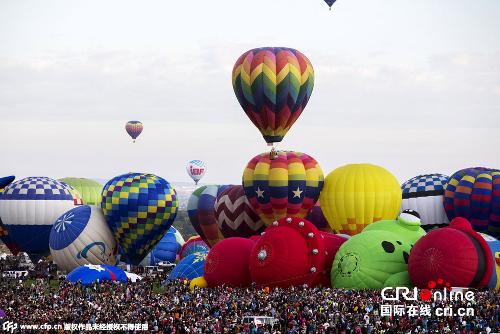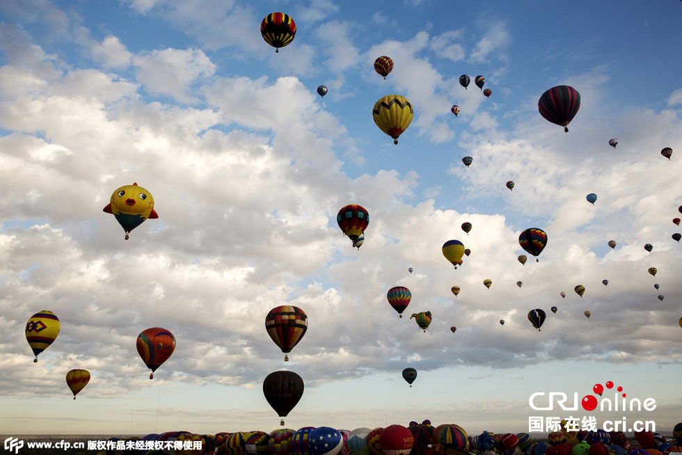 當(dāng)?shù)貢r間2015年10月3日,美國新墨西哥州阿爾伯克基,2015阿爾伯克基國際氣球節(jié)開幕。圖片來源:CFP