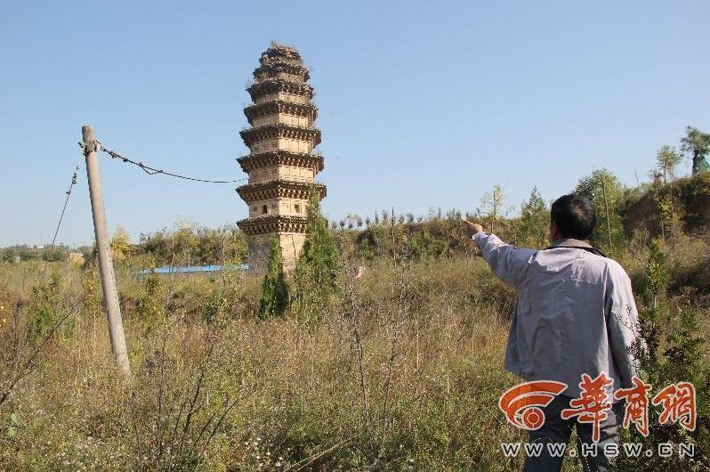 12日,住在離塔不遠(yuǎn)處的村民趙先生告訴華商報(bào)記者,在他的印象中,這座塔發(fā)生傾斜已經(jīng)有20多年了,大約在2005年前后。銅川新區(qū)管委會的工作人員在塔身上系上了一根鋼索,目的是為防止塔身繼續(xù)傾斜?!摆s緊把這塔保護(hù)一下,再不保護(hù)這塔可能就沒有了。”趙先生說,除了傾斜、風(fēng)蝕,導(dǎo)致塔體破壞外,偶爾還有盜墓賊光顧,他們在他周圍打了好幾個(gè)盜洞,這也加速了塔的破壞。