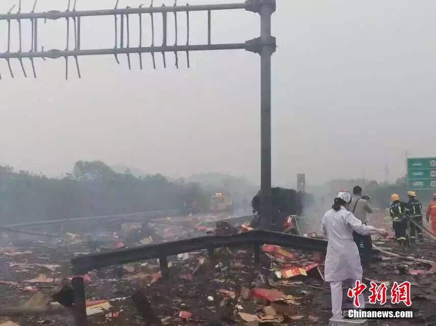 據(jù)江西省高速部門10月30日消息,當(dāng)日15:20左右,距離滬昆高速公路分宜互通2公里處發(fā)生油罐車爆炸事件,爆炸導(dǎo)致分宜收費(fèi)站內(nèi)辦公樓和宿舍大面積玻璃碎裂。現(xiàn)場圖片顯示,有大量煙花爆竹燃燒痕跡。目前,江西省高速、交警、醫(yī)護(hù)、消防等相關(guān)部門已在現(xiàn)場。事故情況正在進(jìn)一步核實(shí)中,傷亡情況未知。(李琴 攝)