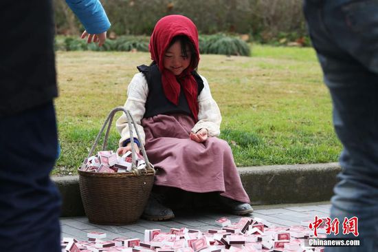 1月12日,上海外灘街頭出現(xiàn)一位小女孩,她身穿古典長裙,頭裹赭紅色圍巾,挎著裝滿火柴的小竹籃,在寒風(fēng)中向過往的路人送小火柴。據(jù)了解,這是一次“愛心衣櫥”幫助中國山區(qū)孩子擺脫寒冷的愛心募捐活動。在寒冷的冬天,他們嘗試以“賣火柴的小女孩”活動,喚起社會的關(guān)注,把更多的溫暖傳遞到中國山區(qū)寒冷孩子的手上。只要掃一掃火柴盒上的二維碼,就可以立刻向山區(qū)孩子送上一套溫暖新衣。張亨偉 攝