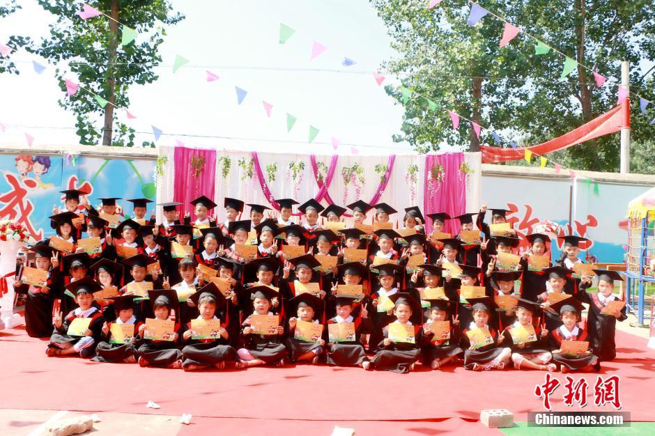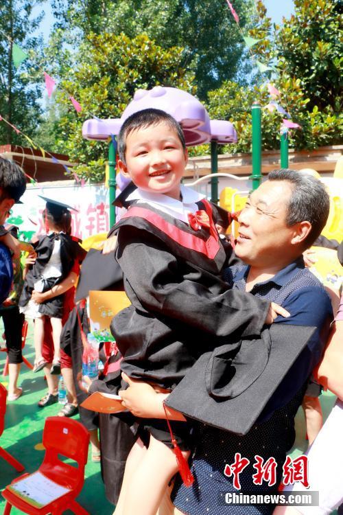 又到一年畢業(yè)季,6月20日,河南商水縣鄧城鎮(zhèn)留守兒童幼兒園60名孩子迎來了一場特殊的畢業(yè)典禮。孩子們身穿迷你學(xué)士服,自信地走紅毯、拋學(xué)士帽。在跪謝父母養(yǎng)育之恩的環(huán)節(jié),因?yàn)榇蟛糠趾⒆邮橇羰貎和⒆觽冎荒芄蛑x爺爺奶奶的照顧,許多家長在現(xiàn)場感動(dòng)落淚。葉青 攝