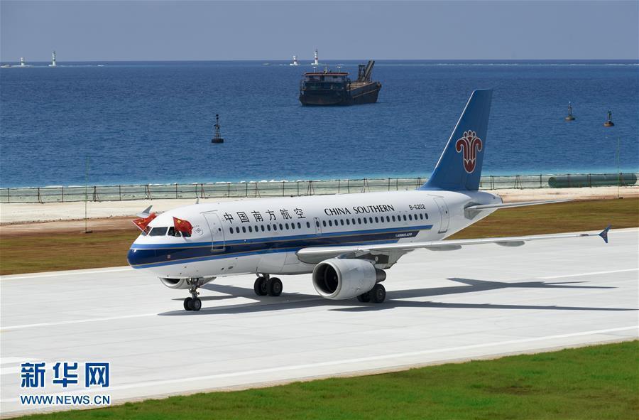 7月13日,南方航空公司的客機(jī)在美濟(jì)礁新建機(jī)場著陸。新華社記者 陳益宸 攝 圖片來源:新華網(wǎng)