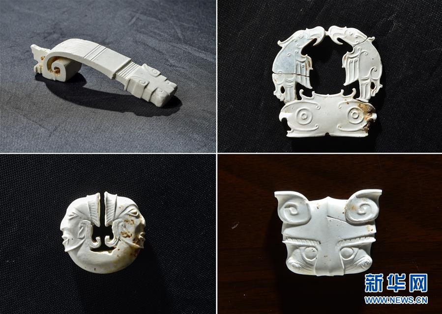 這是陜西神木縣石峁遺址皇城臺遺跡發(fā)現(xiàn)的玉器(2016年6月7日攝)。新華社發(fā)