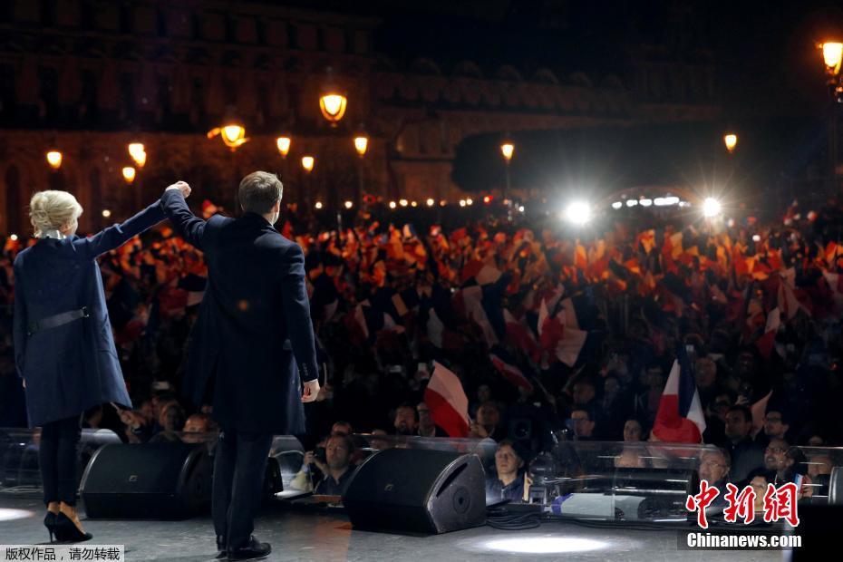 巴黎時間5月7日晚,法國總統選舉第二輪投票初步計票結果顯示,中間派獨立候選人、“前進”運動領導人埃馬紐埃爾·馬克龍以大幅優(yōu)勢擊敗極右翼政黨“國民陣線”候選人馬麗娜·勒龐。年僅39歲的馬克龍由此成為法國史上最年輕的總統,也成為世界上最年輕的大國領導人。圖為馬克龍的支持者在得知馬克龍當選后歡呼。中新社記者 龍劍武 攝