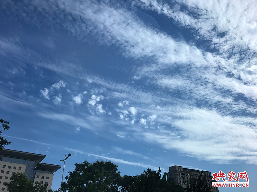立秋大雨過(guò)后,8月8日清晨時(shí)分,鄭州上空出現(xiàn)美麗的魚(yú)鱗云,讓人沉醉,讓人興奮。抬頭45度,仰望天空,鬧市與清澈只有一顆心的距離……