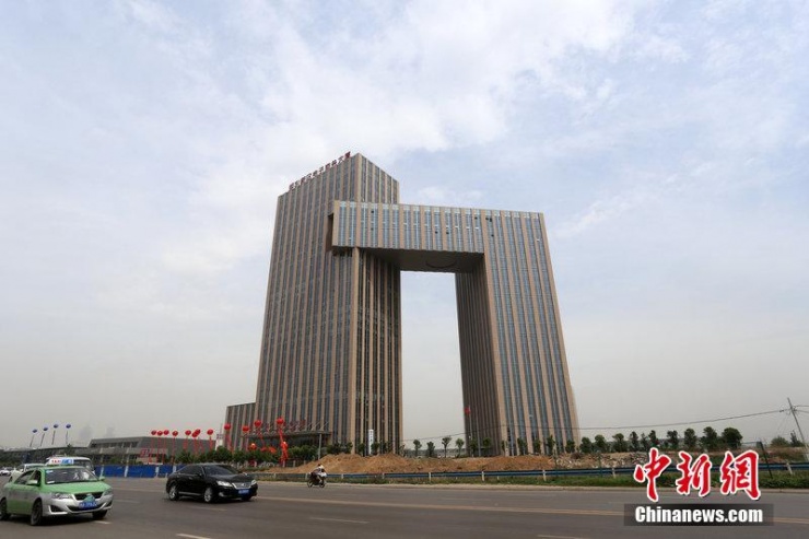 河南省鶴壁市淇濱區(qū)淇水大道與珠江路交匯處的龍門大廈外形酷似一個|“板凳”,看到的人紛紛稱奇。