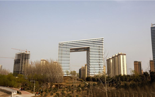 鄭州這棟由同濟大學建筑設(shè)計院綜合設(shè)計的鄭東新區(qū)電子商務(wù)大廈,因外形酷似中央電視臺新大樓而成了名樓,被網(wǎng)友戲稱為挑戰(zhàn)央視大樓“大褲衩”的鄭州“小褲衩”。