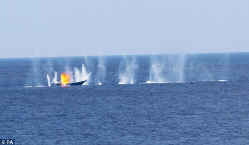 “隼”式直升機(jī)對(duì)海盜船進(jìn)行掃射