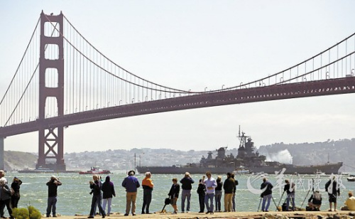 適逢大橋通車75周年紀(jì)念日前夕,太平洋戰(zhàn)列艦中心發(fā)言人鮑勃·羅杰斯說:“這艘偉大的戰(zhàn)艦在大橋落成75周年紀(jì)念日開始最后旅程,非常合適。”