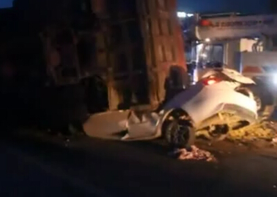 轎車被壓扁 竟奇跡生還