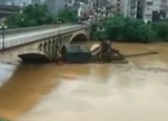 • 實拍砂船遭洪水沖擊撞上大橋