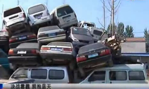 商丘現(xiàn)場(chǎng)銷(xiāo)毀400多輛黃標(biāo)車(chē)