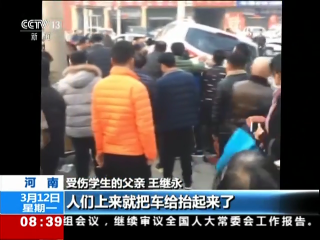 中學(xué)生被壓車下 群眾抬車救人