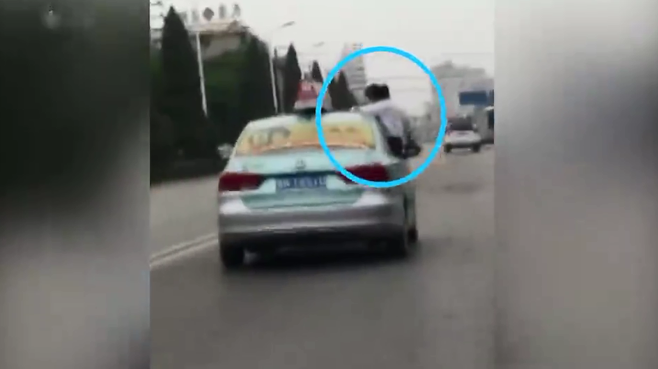 停運(yùn)的哥稱后怕,教育趴車(chē)頂寫(xiě)作業(yè)女兒