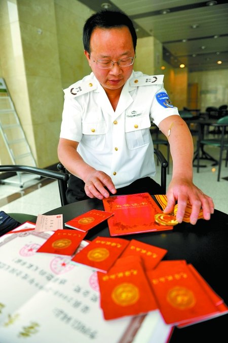 雖說(shuō)他熱衷于為大河報(bào)提供新聞線索,但提起自己的獻(xiàn)血經(jīng)歷卻不想多說(shuō)。在記者的反復(fù)詢問下,李四信說(shuō),他于2002年1月開始第一次獻(xiàn)血。當(dāng)時(shí),他與朋友在二七廣場(chǎng)附近游玩時(shí)看到一輛采血車,出于好奇就去獻(xiàn)了400毫升全血,因?yàn)槭呛檬?,獻(xiàn)過(guò)后自己很開心。從那以后,自己對(duì)獻(xiàn)血便“上了癮”,剛開始按獻(xiàn)全血的規(guī)定,每隔半年獻(xiàn)一次,一次400毫升;后感覺獻(xiàn)全血隔的時(shí)間有點(diǎn)長(zhǎng),就開始獻(xiàn)成分血,一個(gè)月就可以獻(xiàn)一次。其間,他獲得過(guò)鄭州市紅十字會(huì)、中國(guó)紅十字會(huì)總會(huì)等多個(gè)部門頒發(fā)的獻(xiàn)血榮譽(yù)證書。