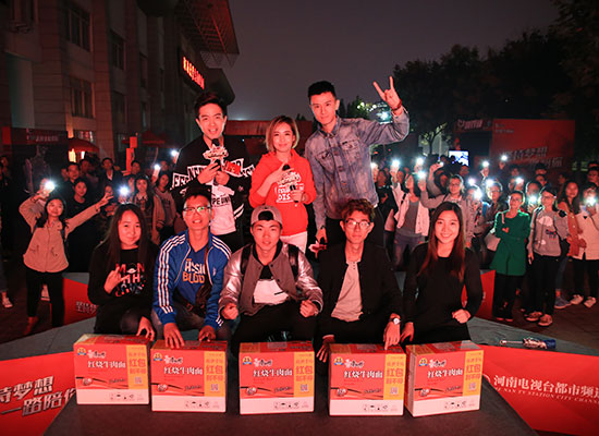 昨天,不僅是康師傅紅燒牛肉面《名嘴K歌秀》校園海選的首站,也是都市頻道十九歲的生日,一開場,三位評委就帶領(lǐng)現(xiàn)場所有的同學(xué)和參賽選手們,一起大唱《生日快樂》歌,共同祝愿都市頻道生日快樂,收視長虹!雖然天空中飄著淅淅瀝瀝的小雨,卻絲毫沒有影響同學(xué)們的熱情,上午的樂隊比拼和下午的歌手選拔,共吸引了近百名參賽選手?;顒右恢背掷m(xù)到天黑,很多同學(xué)還為下課晚沒有趕上報名而感到遺憾,紛紛追問下一場校園海選的時間。值得一提的是,本次活動不僅吸引了本校的很多學(xué)子,外校的許多音樂愛好者也紛紛前來參加,連外國友人看了康師傅紅燒牛肉面《名嘴K歌秀》的節(jié)目宣傳后,都立刻現(xiàn)場報名,一位外籍選手演唱的《加州旅館》引來掌聲尖叫聲此起彼伏,而眾多小鮮肉的演唱也是讓現(xiàn)場圍觀的妹子們都不淡定了。作為康師傅紅燒牛肉面《名嘴K歌秀》校園海選河大站的評委,在如此火爆的現(xiàn)場怎么能只說不唱呢?都市頻道《都市報道》的主持人林泉、河南電臺FM90.0 My Radio 的Seven也都分別演唱了自己的拿手曲目。整場活動持續(xù)到天黑才結(jié)束,最后的大合影是所有選手打開手機(jī)閃光燈充當(dāng)人肉背景才完成的。