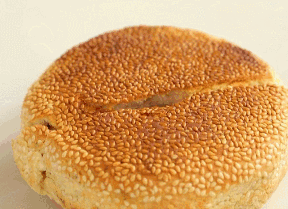 登封本地人最愛的就是焦蓋燒餅,正宗的焦蓋燒餅表面撒滿芝麻,外面焦黃酥脆內層松軟,一半死面一半發(fā)面和成面團下成劑子,蘸上油鹽五香粉等調料后包制成餅,壓制成型后再經過刷水蘸芝麻,餅的雛形就呈現(xiàn)出來了。