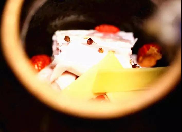 寒冷干燥的天氣,吃完包子自然是要來碗湯潤潤喉。瓦罐頂部封著錫紙,一打開鮮味就飄出來。雞湯表面有一層黃黃的雞油,還點綴著幾顆鮮紅的枸杞,一看就忍不住想去嘬一口。