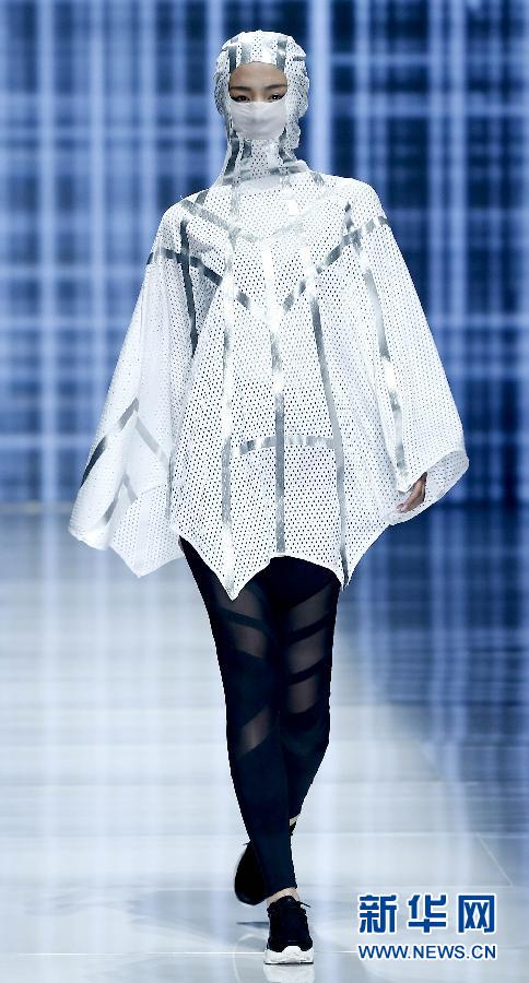 10月28日,模特在北京舉行的中國國際時(shí)裝周“喬丹·尹鵬運(yùn)動(dòng)裝發(fā)布會(huì)”上,展示設(shè)計(jì)師尹鵬設(shè)計(jì)的搭配各種“口罩”的運(yùn)動(dòng)裝。新華社記者陳建力攝